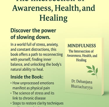 Mindfulness – The Intersection of Awareness, Health and Healing is a gentle yet powerful guide that helps readers slow down, reconnect with themselves, and cultivate inner balance in just a few minutes a day. Designed for busy minds and modern lifestyles, this book blends science, spirituality, and practical techniques to show how mindful living can transform emotional well-being, physical health, and daily habits.